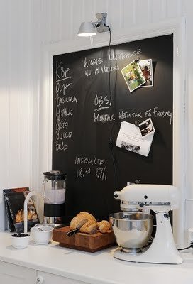 Igazán trendi és mutatós megoldás a lakás valamely helyiségében a fal egy részét fekete táblafestékkel lekenni, amely ezután dekorációs és gyakorlati célokra is használható. Legkézenfekvőbb a konyhában kialakítani egy ilyen felületet, de az előszobában vagy a gyerekszobában is jól megállja a helyét. A lentebbi képek tanúsága szerint akár még a hálóban is szuperül mutathat.
