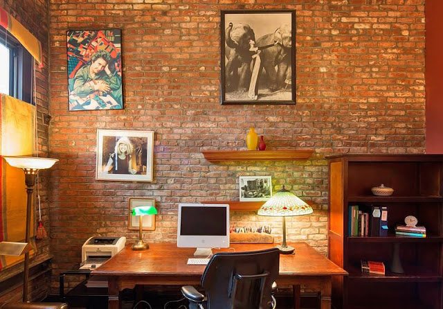 A látványt elsősorban a rusztikus vörös téglafal és a fa mennyezeti gerendák teszik karakteressé. A látszólag egyáltalán össze nem illő bútorok valahogy jól mutatnak együtt. Furcsa, érdekes összhang, különleges hangulat jön át a képekről. Engem magával ragadott!